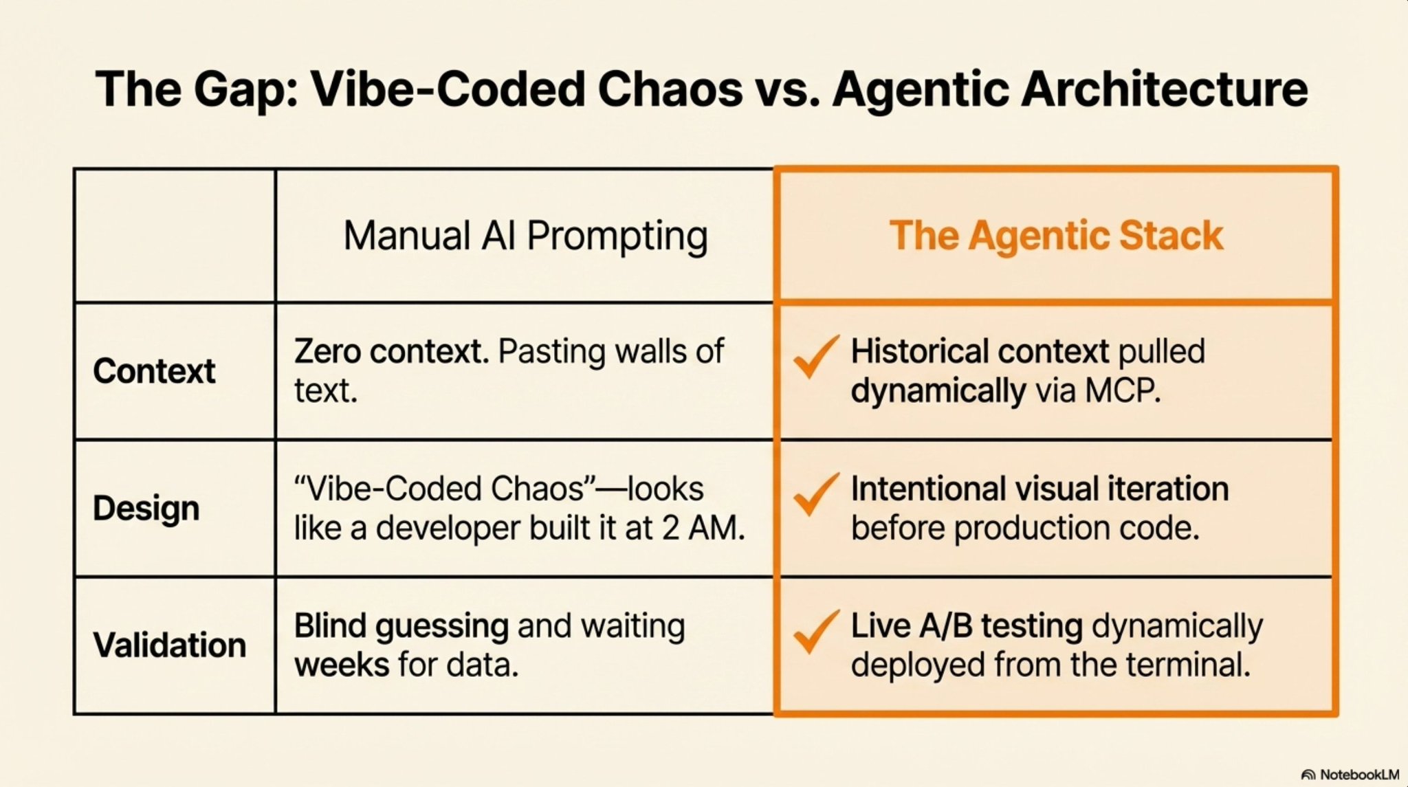 Amir’s team does this with a master performance log. Every A/B test result, every revenue figure, every optimization gets stored. When they spin up the next campaign, the AI starts from real data instead of guessing.