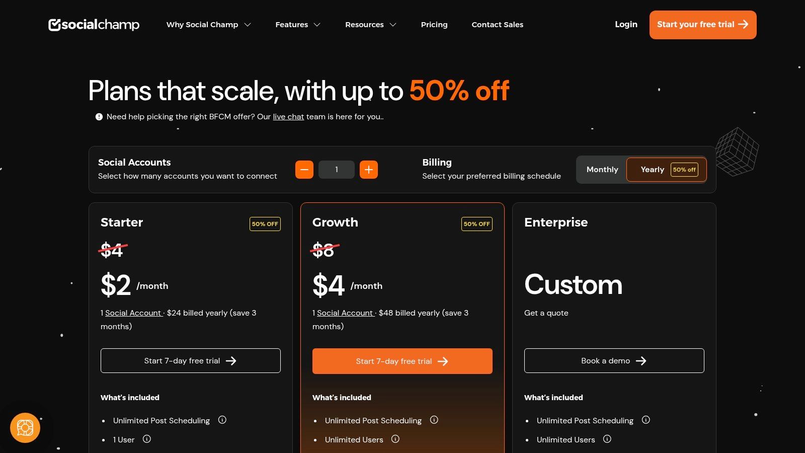Our Take: Social Champ’s strength is its simplicity and clear-cut free offering. The 15-post total limit is quite restrictive for active brands, but it's sufficient for maintaining a minimal presence across a few key platforms. The budget-friendly upgrade path is also a plus for users who anticipate future growth.