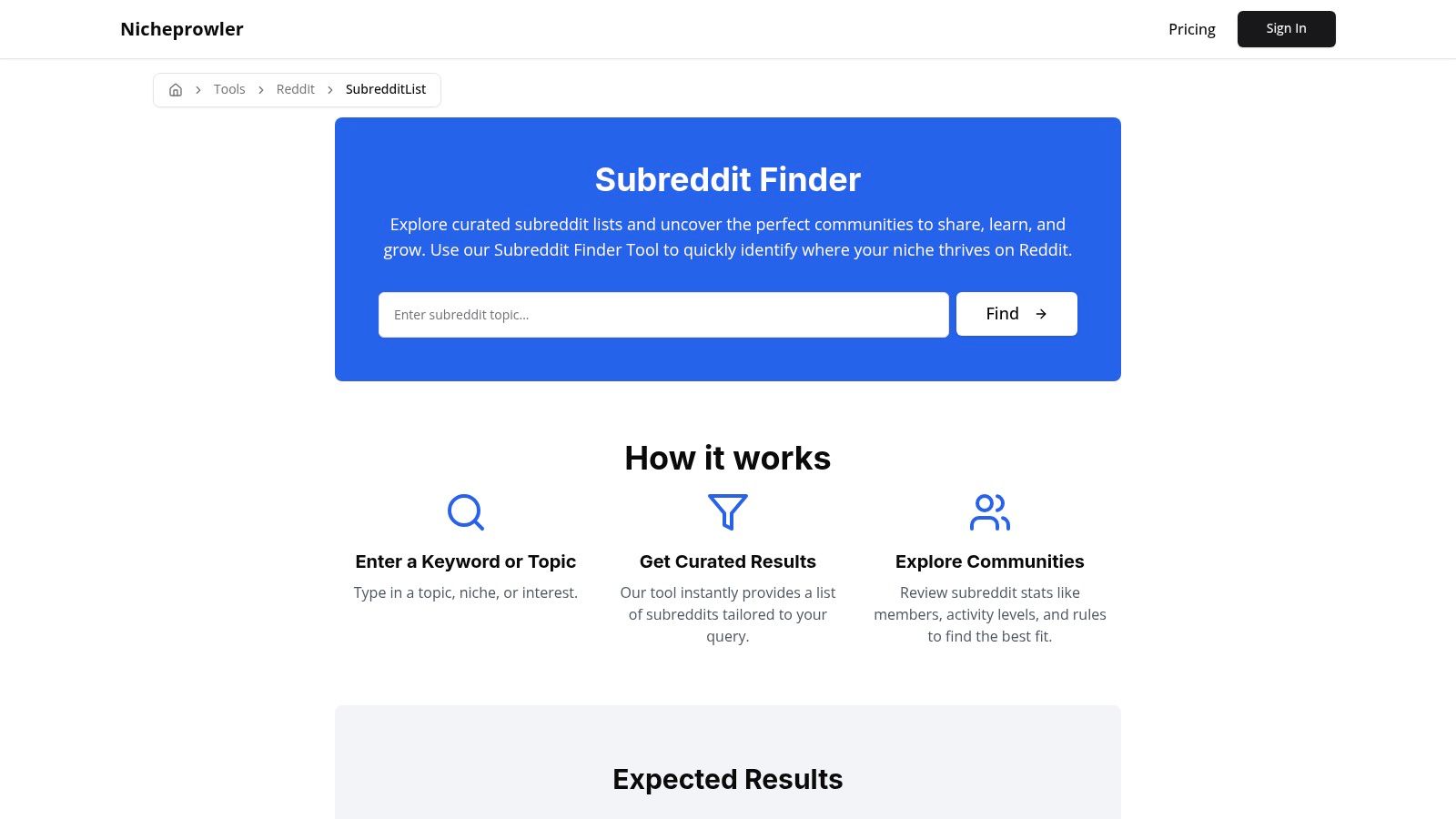 - Access: The Subreddit Finder tool is free to use on their website.