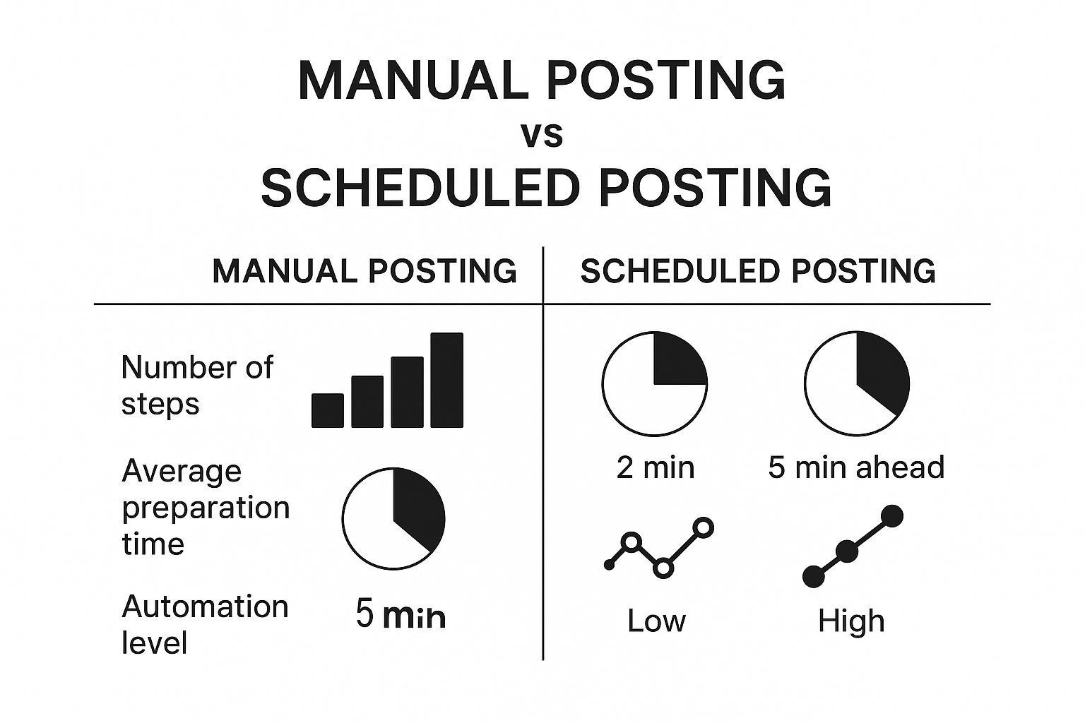 This visual really highlights the difference between posting manually and using a scheduling tool.