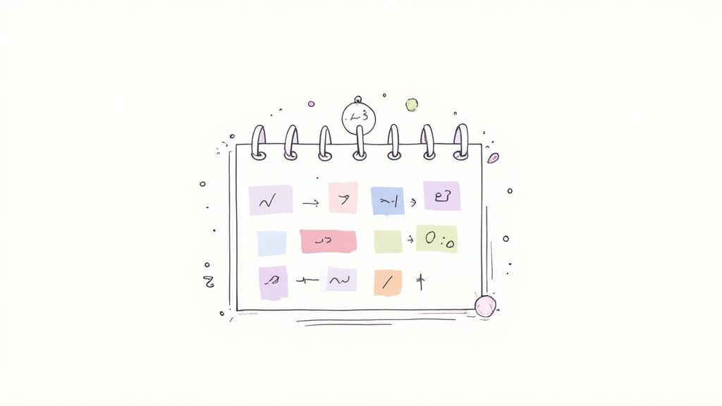 - Include Key Details: A great calendar entry goes beyond a title and a date. Include the target persona, primary SEO keyword, content format (blog, video, etc.), a brief content outline, and the distribution channels. For a deeper dive, explore how to create a content calendar for social media.