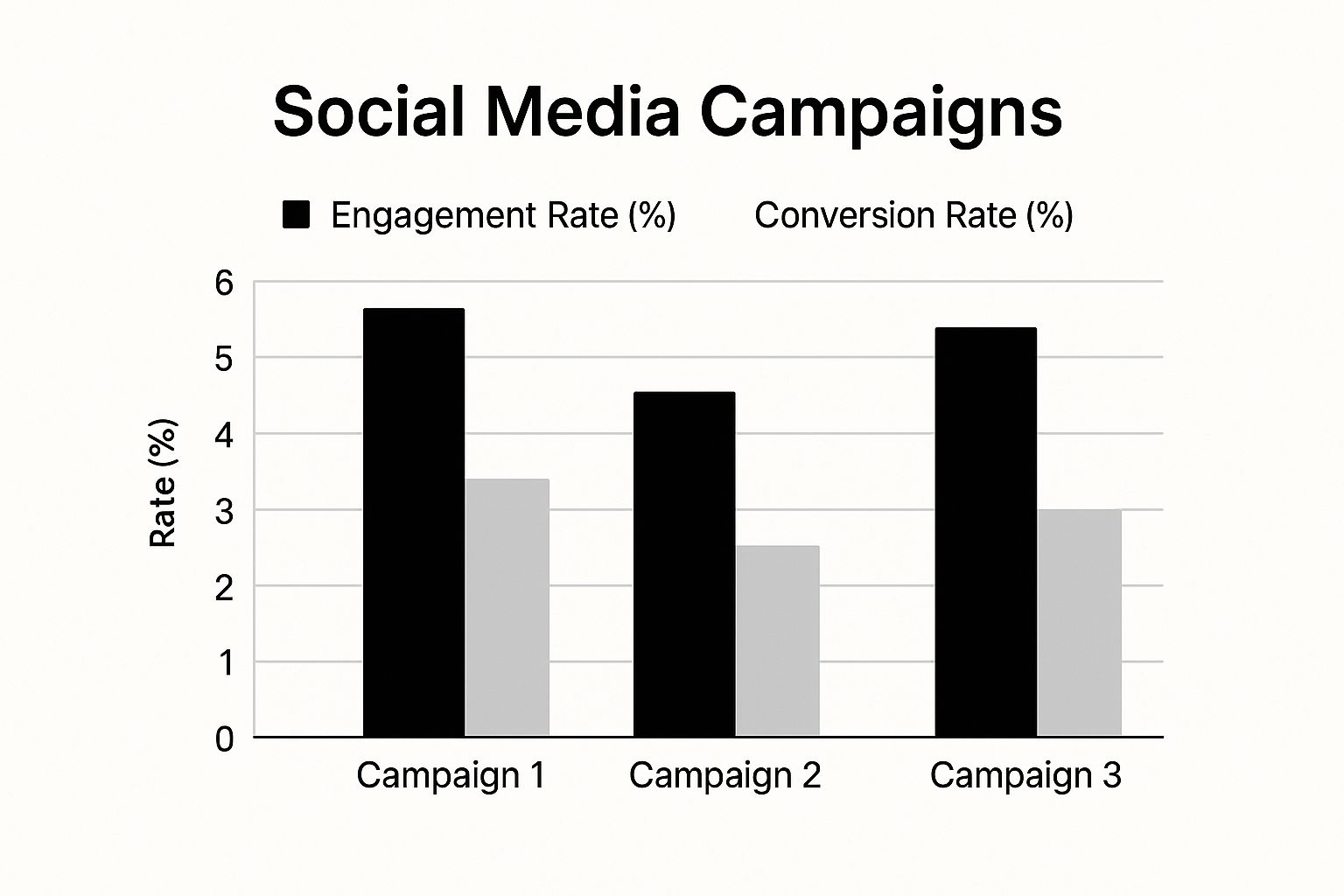 The bar chart below compares key performance indicators for three different social media campaigns, illustrating how data can reveal which efforts drive the most valuable outcomes.