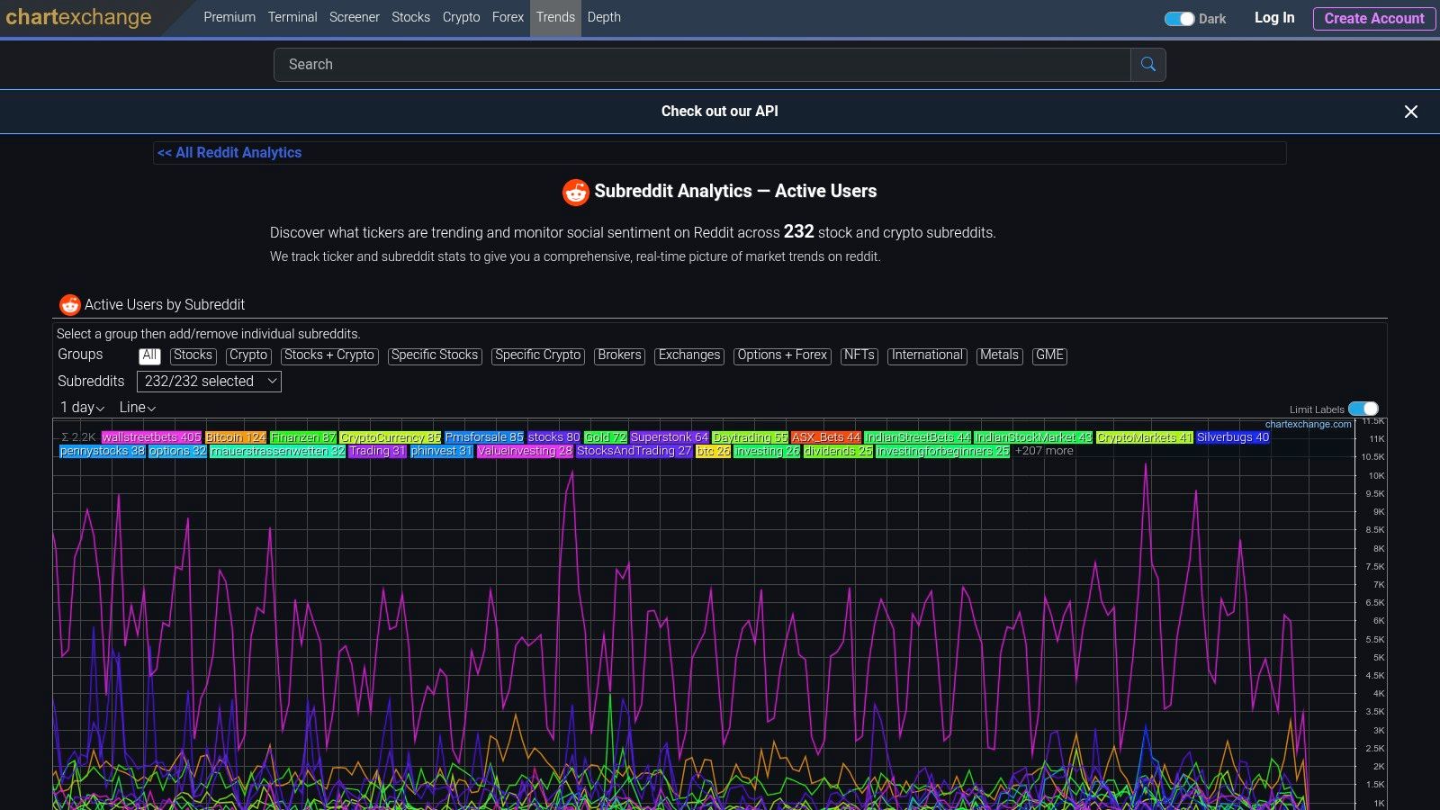 - Free Access: The core subreddit trends data on ChartExchange is available for free.