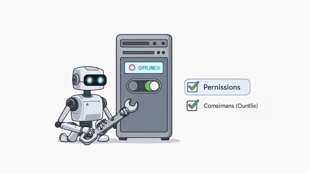 The most common panic-inducer is when a bot shows up as offline right after you’ve invited it. Your first instinct might be to dive into your server settings, but hold off. More often than not, this isn't a problem on your end. The bot itself could be down for a quick maintenance break or suffering a wider outage.