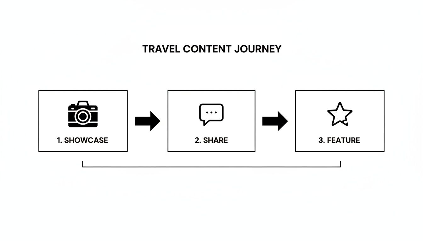 Partnerships are also a goldmine for authentic content. Today's travelers trust real experiences far more than polished ads. This is where user-generated content (UGC) and creator storytelling become your secret weapons. We know this kind of content blows traditional ads out of the water when it comes to building trust and getting seen. Just look at the "Inspired by Iceland" campaign, which used creator content to drive a staggering 164% increase in search interest. That’s the power of authenticity.