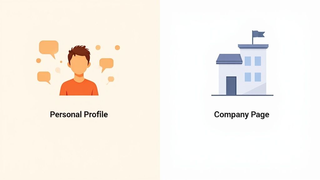 When you stack a LinkedIn Company Page against a Personal Profile, the difference in engagement isn’t just a small gap; it’s a canyon. The reason is pretty simple: people connect with other people, not with faceless logos. This is a central part of how we build trust, and LinkedIn’s algorithm is built around that very principle.