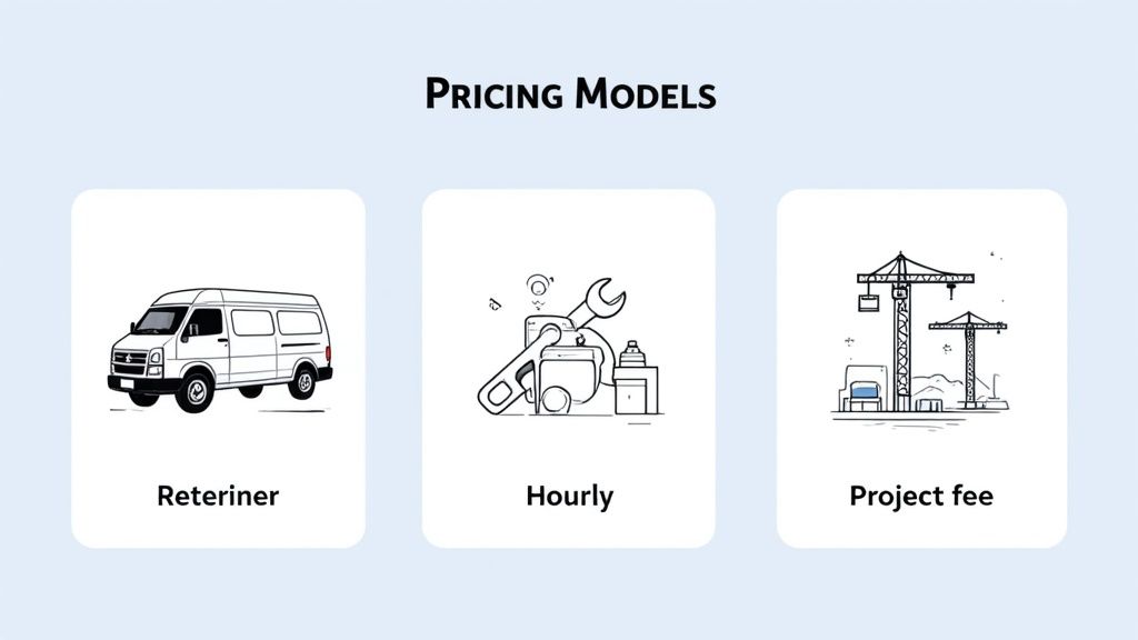 It’s the same with social media. The pricing model needs to match the client's goals. Each approach has its ups and downs, but understanding them is the first step to figuring out a price that makes sense for everyone involved. Let's break down the big three: monthly retainers, hourly rates, and project-based fees.