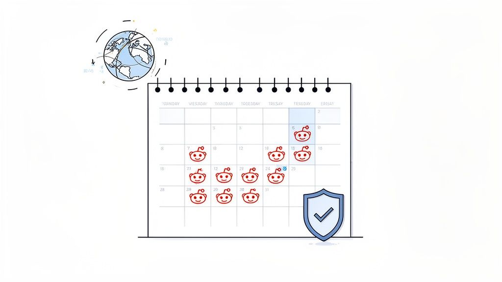 This is where scheduling tools become so valuable. It’s not just about setting it and forgetting it; it’s about being precise. A good scheduler helps you stay active and consistent without looking like a spammer, letting you drop in on conversations when people are actually online and listening. That’s how you build the credibility and trust that truly matter on Reddit. If you want to dig deeper into timing, check out our guide on the best time to post on Reddit for engagement.