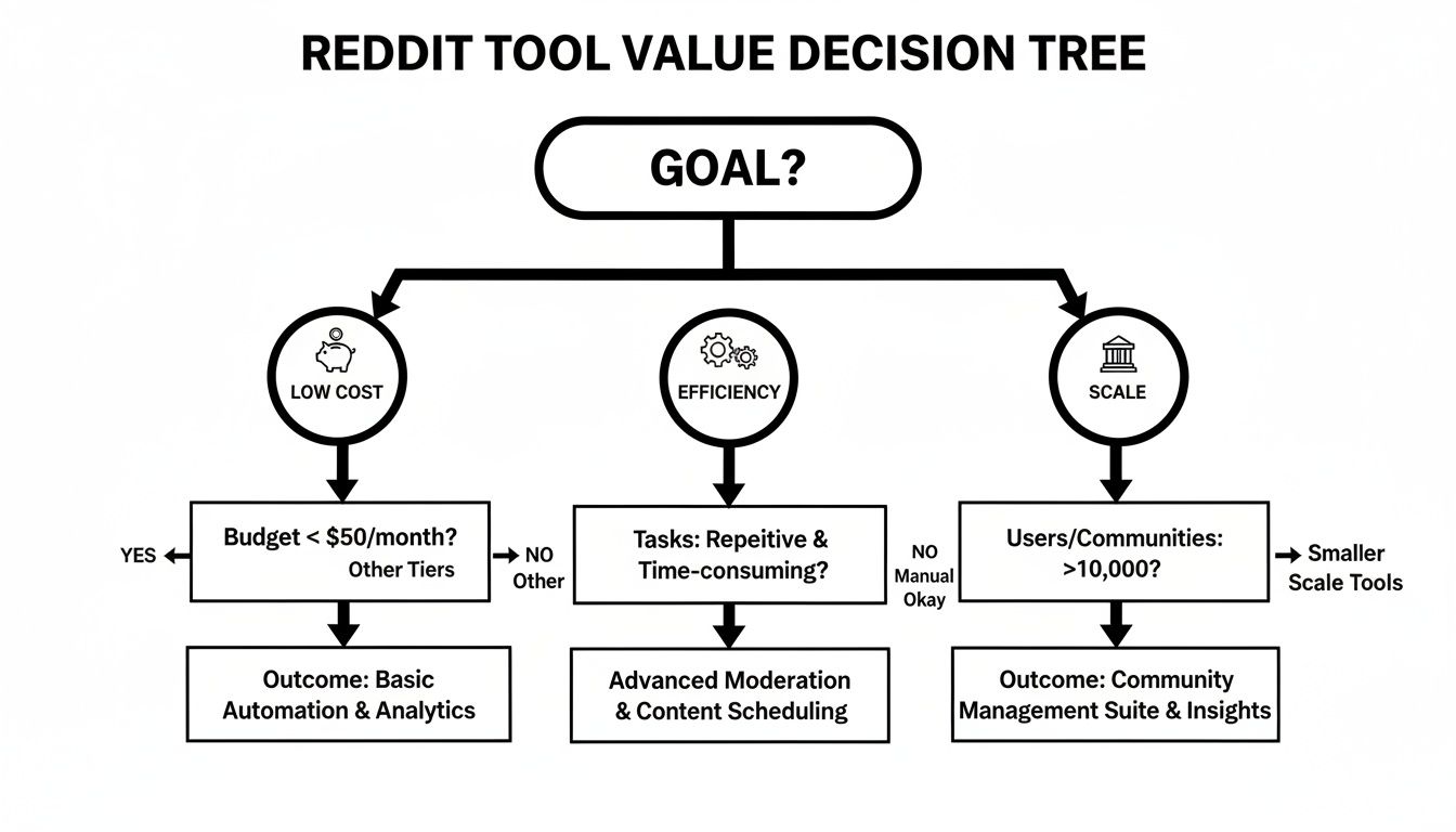 It’s easy to get fixated on the monthly price tag, but that’s a classic mistake when choosing a Reddit scheduling tool. The real question isn't "how much does it cost?" but "how much value does it create?" A cheaper tool that forces you to constantly babysit your posts is far more expensive in the long run than one that genuinely saves you time.