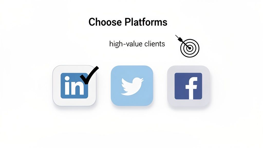 Your platform choice always comes back to your Ideal Client Avatar. If you’ve determined your target client is a 55-year-old CFO in the logistics industry, your time is far better spent on LinkedIn than on learning the latest Instagram Reels dance. This laser focus ensures every minute you spend on social media is a direct investment in landing your next client.