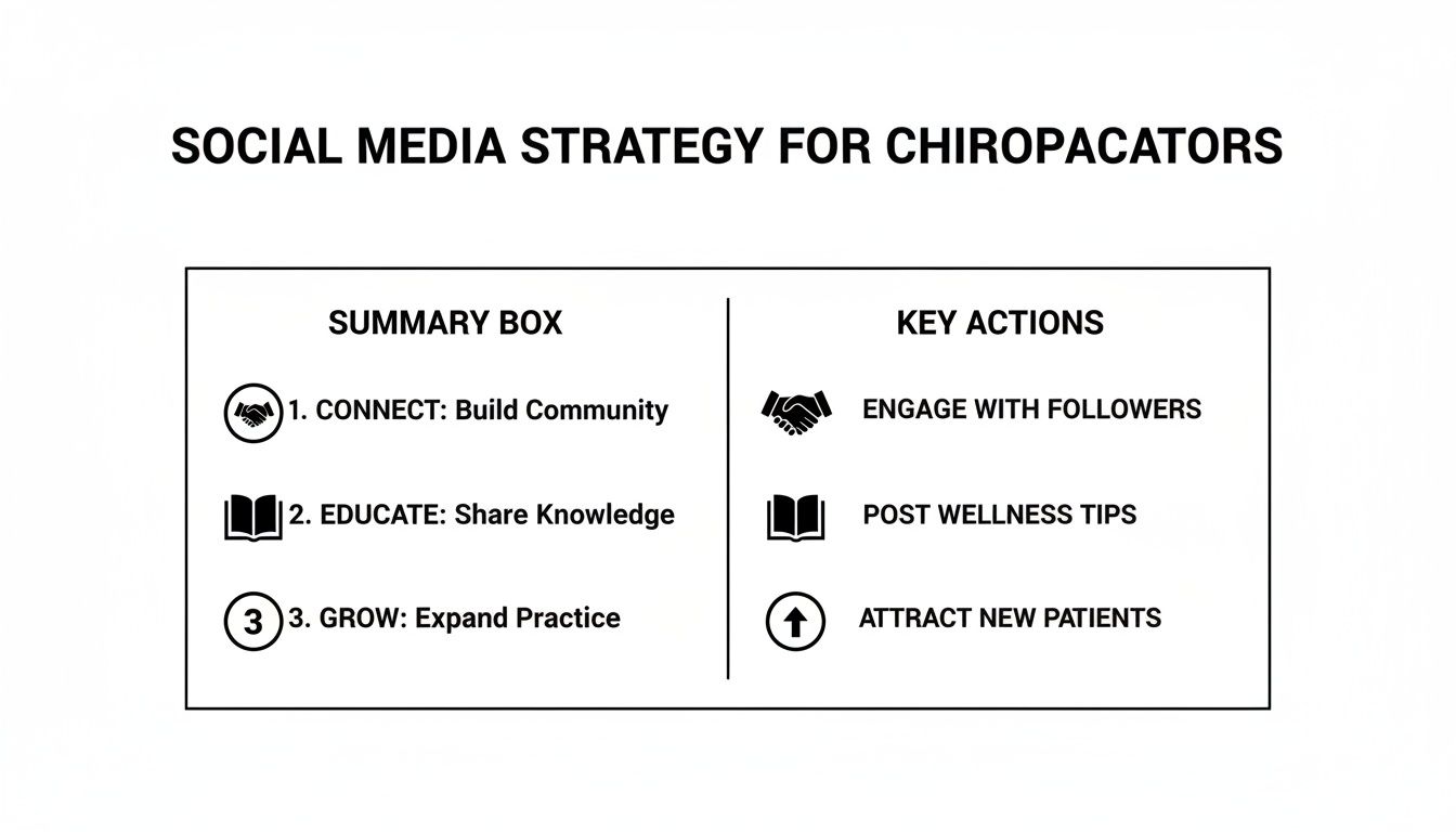 Let's be honest, effective social media for chiropractors isn't about posting "Happy Friday!" and calling it a day. It’s about building a system that educates, builds real authority, and gently guides followers toward becoming new patients. When done right, your social media stops being a chore and starts becoming a powerful patient acquisition tool.