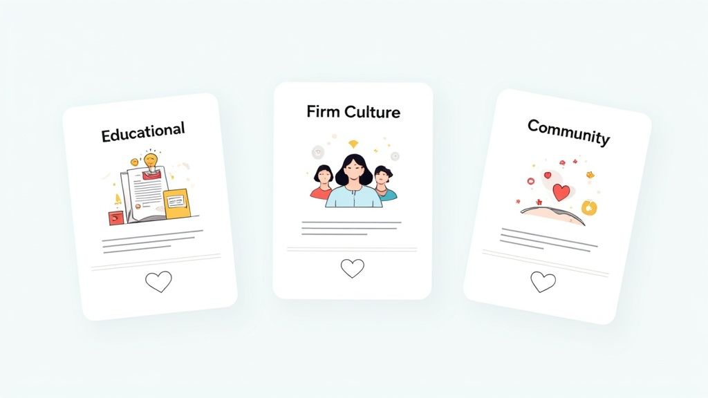 Alright, you've picked your platforms. Now for the million-dollar question: what on earth do you actually post? I've seen countless law firms make the same mistake—treating their social media feed like a digital billboard.