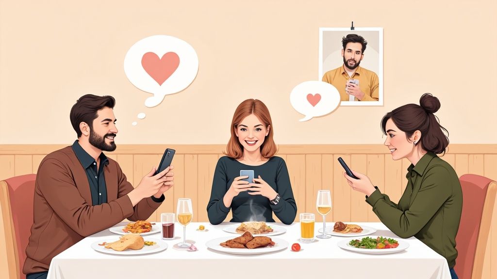 Let's be real, the way people find restaurants has completely changed. Around 82% of restaurants are on social media for a simple reason: that's where the customers are. In fact, a whopping 74% of people now use social media to decide where to eat. More than half are scrolling through Instagram and Facebook feeds looking for their next meal. These numbers aren't just stats; they're a clear sign that a strong online presence is non-negotiable.