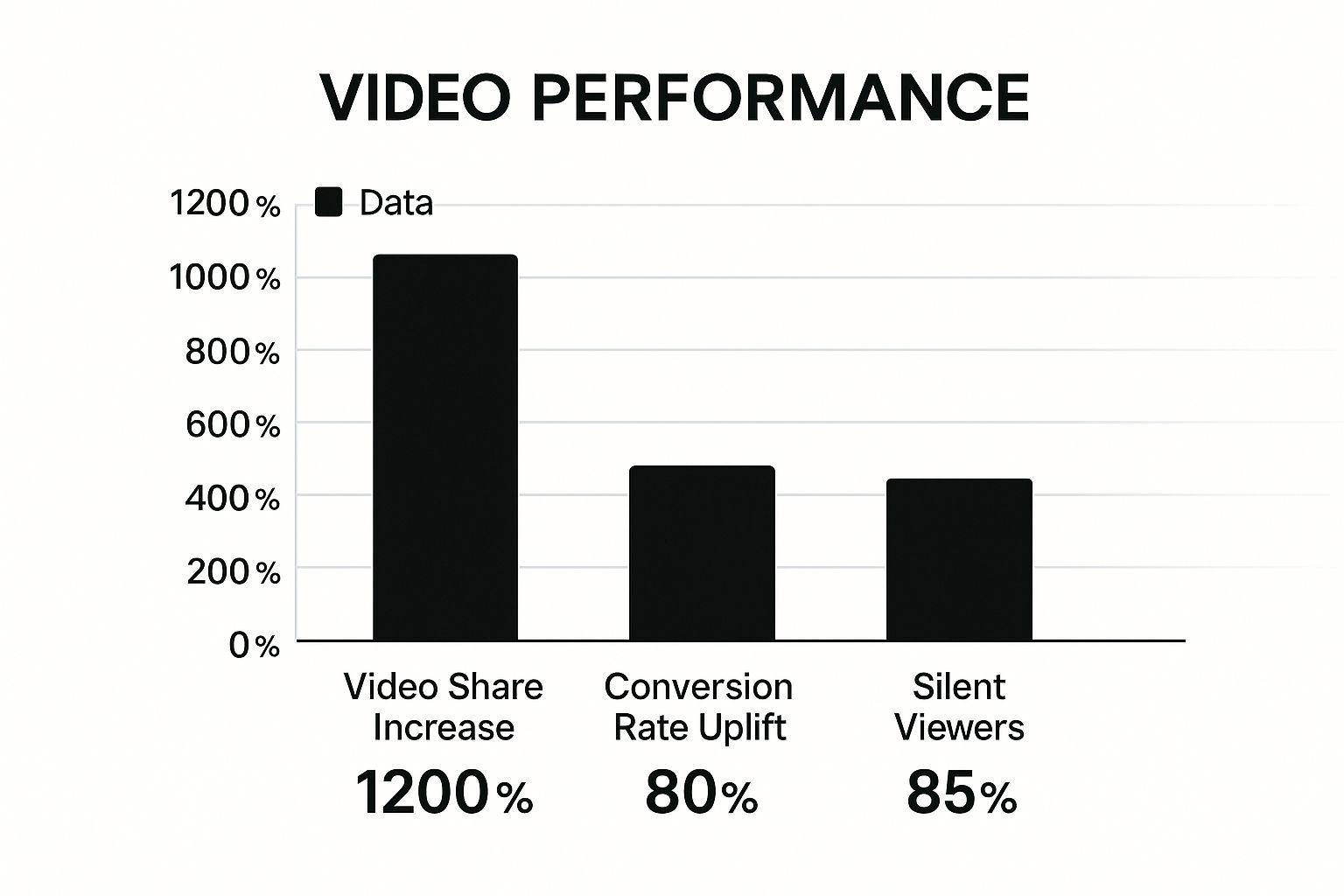 This data clearly shows that video not only gets shared more but also significantly boosts conversions and is frequently consumed without audio.