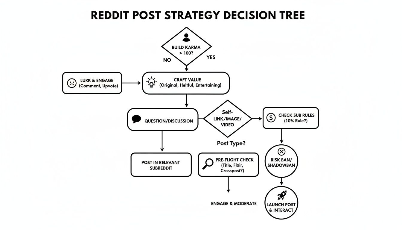The best-case scenario is avoiding this situation entirely. The flowchart below outlines the proactive steps—from building karma to pre-flight checks—that form a solid Reddit strategy.