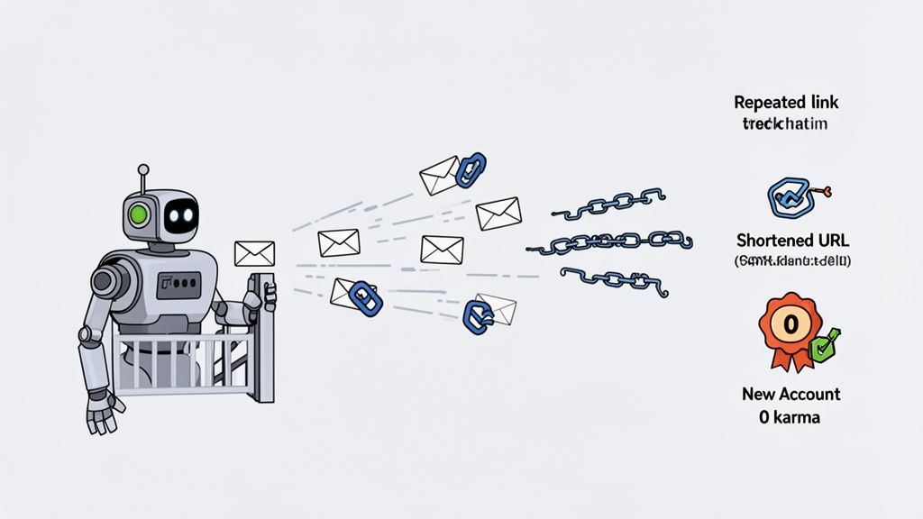 The biggest hurdle is Reddit's own sitewide spam filter. It's a powerful algorithm that's learned from billions of posts what spam looks like. The key thing to remember is that it doesn’t judge the quality of your content—it judges the patterns in your behavior. This is where even well-meaning posters often slip up.